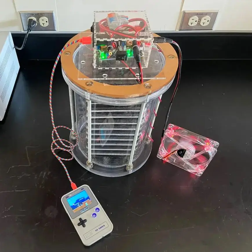 Для начала нужно было проверить общий потенциал эффекта. Одной пары «блинов» толщиной в полдюйма хватило чтобы запитать светодиод. 3,3 В и 0,06 Вт — весьма скромный результат. Однако десяток «блинов» уже смогли выдать мощность для работы легкого CPU-кулера и игровой карманной приставки.