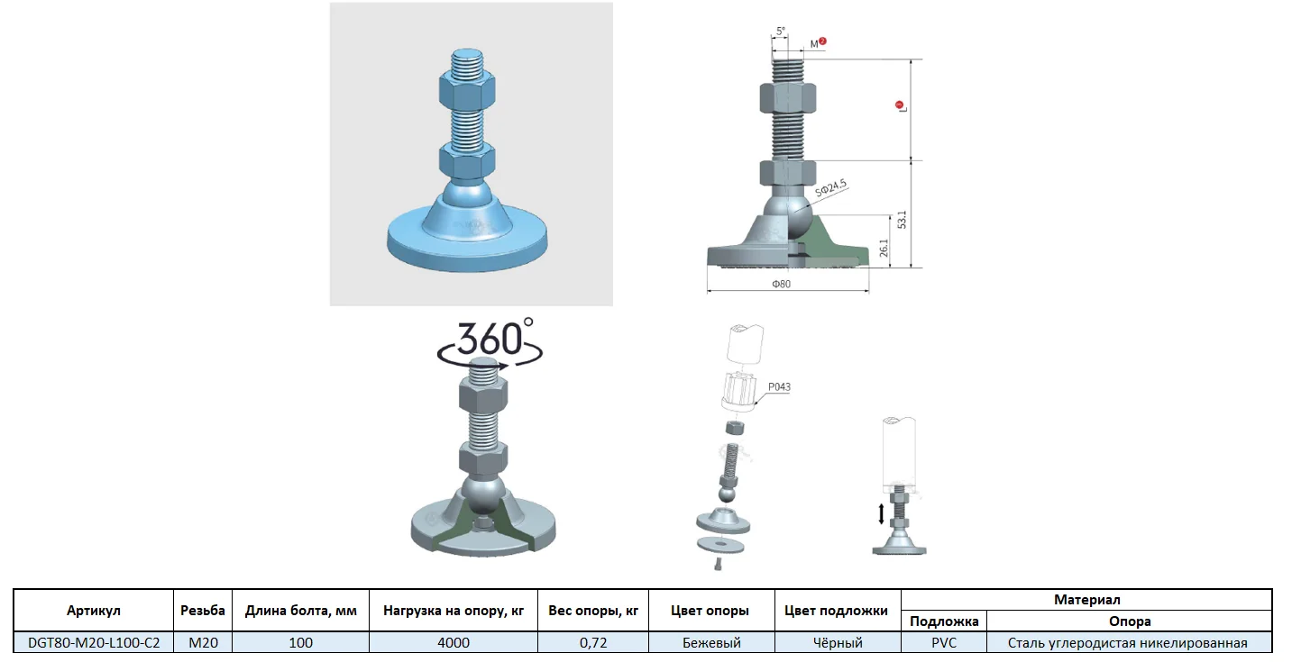 Материал основания и резьбового стержня - Сталь углеродистая никелированная