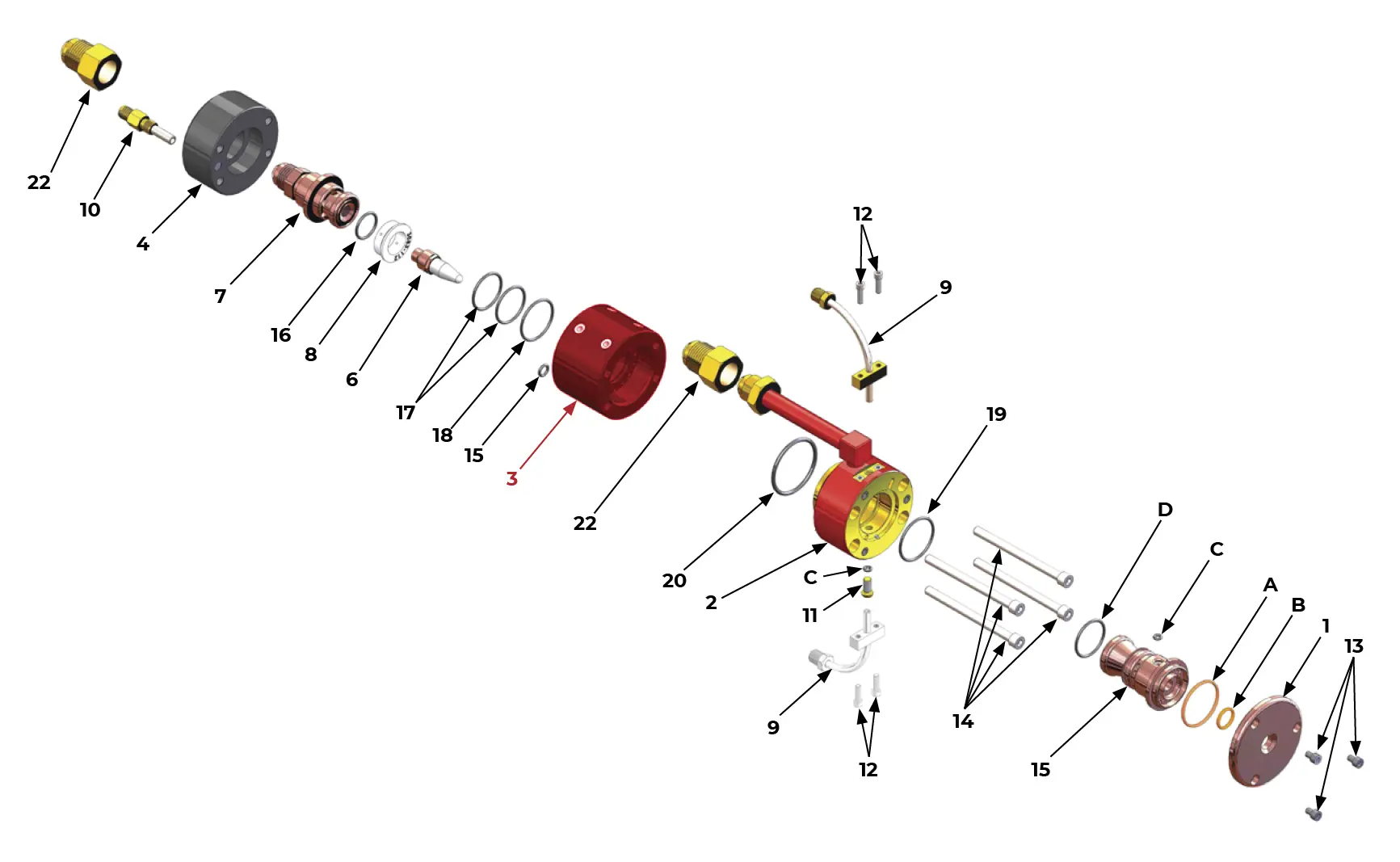 | C | IRS-300042 | Уплотнительное кольцо, анод, отверстие для подачи порошка | O-RING, ANODE, POWDER PORT | 2-006S | |