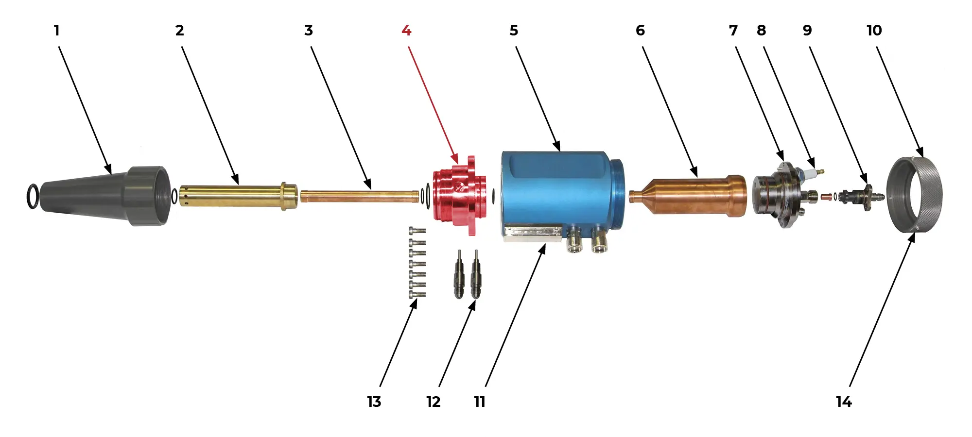 IRS-306011 Фланец подвода порошка совместим с моделью горелки K2, на взрыв-схеме отображается позицией 4