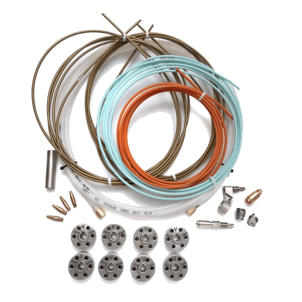 Полный комплект проводов, фитингов и аксессуаров для подключения аппарата лазерной сварки и механизма подачи. А также в комплект входит: ролики для подачи присадочной проволоки различных диаметров и сменные сварочные наконечники.