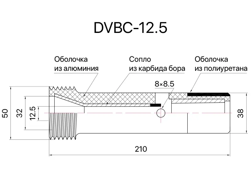 Износостойкое пескоструйное сопло модели DVBC-12.5 от производителя SandBlue с двойным каналом Вентури. Особенностью конструкции сопла является использование двух твердосплавных вставок с каналом Вентури, которые располагаются поочередно, а также наличие 8 дополнительных отверстий в защитном корпусе по всему диаметру сопла, которые затягивают атмосферный воздух во второй канал. Применяя для абразивной чистки такие сопла можно повысить показатели охлаждения пескоструйного сопла и показатели производительности на 25-30%. Совместимы с соплодержателями Clemco NHP, Contracor NHP, Konvena KNH, GN-BLAST GN-NHP, 3М IG2. Внутренняя вставка сопла из карбида бора (B4C) обеспечивает увеличенный срок службы до 1000 часов пескоструйной обработки.