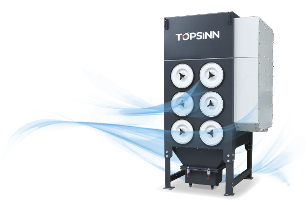 Промышленная фильтрационная установка предназначена для очистки воздуха от вредного дыма и пыли, образующихся при лазерной маркировке, гравировке, резке и сварке. Дым и пыль, образующиеся при работе лазерного станка, всасываются вентилятором в пылеуловитель оседающего типа по специальному каналу, а искры и крупные частицы металлического мусора в отходящих газах предварительно отделяются с помощью искроуловителя, чтобы защитить фильтрующий элемент пылеуловителя и предотвратить возгорание прибора при удалении пыли. Затем дым поступает в камеру для загрязненного воздуха пылесборника, а твердые частицы, содержащиеся в дымовых газах, фильтруются и пропускаются через огнезащитный фильтрующий картридж. Чистый воздух очищается фильтрующим картриджем, а затем выбрасывается вентилятором.