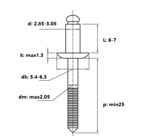 Заклёпка вытяжная 3,2х6,0 Нерж. Сталь / Нерж. Сталь стандартная головка DIN 7337