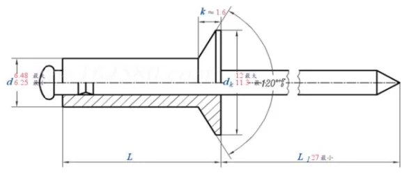 Заклепка вытяжная DIN 7337 (B) нержавеющая сталь/нержавеющая сталь 6,4х12 потайной борт