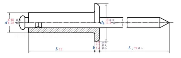 Заклепка вытяжная нержавеющая сталь/нержавеющая сталь 6,4х12 стандартный борт